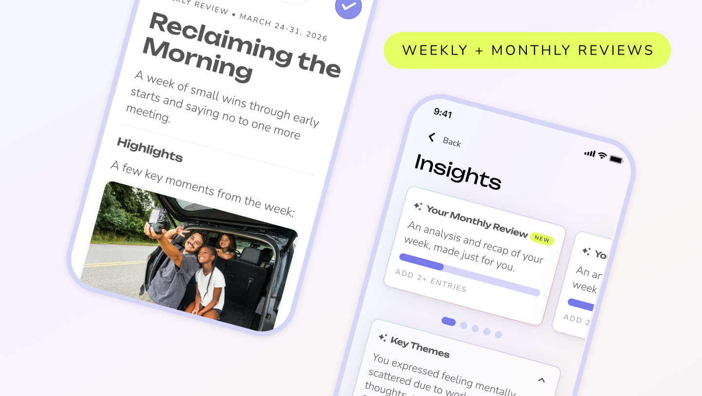 New Insights Page: Access AI-powered insights from your entries along with a new interactive calendar view and journaling statistics.