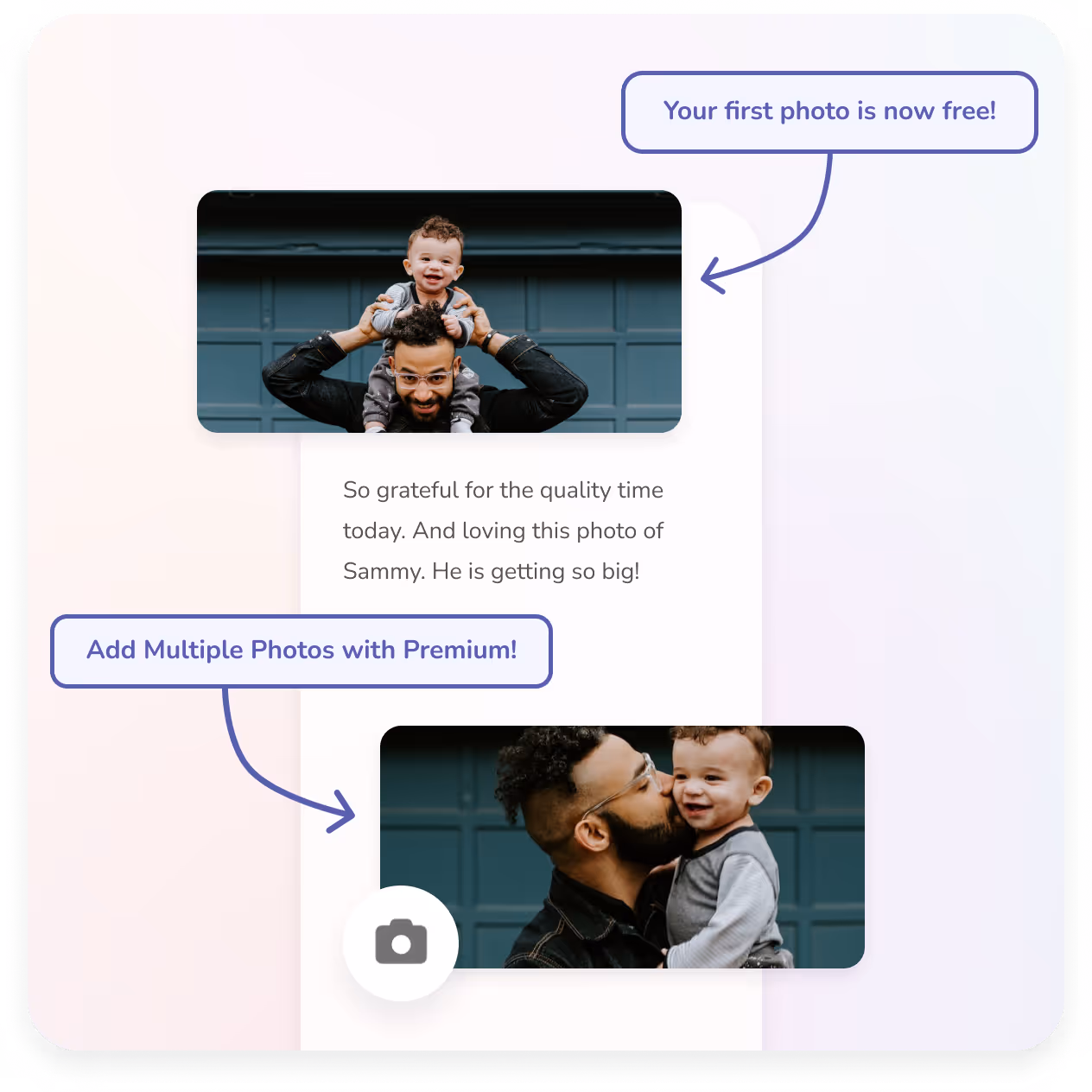 Add a photo to an entry as part of the Free plan. Premium users can now add multiple photos to each entry. Important: Entries created with multiple images in this release will not appear on older versions of the app.